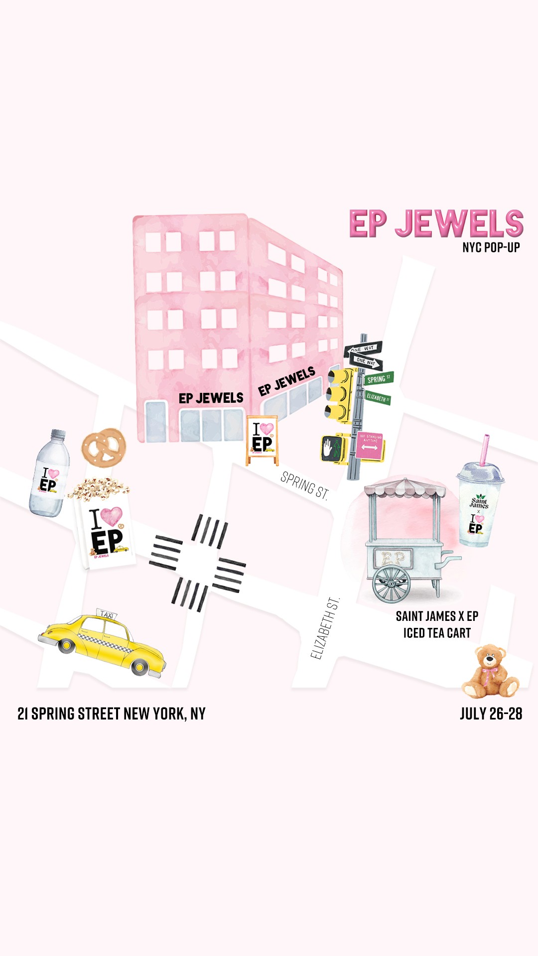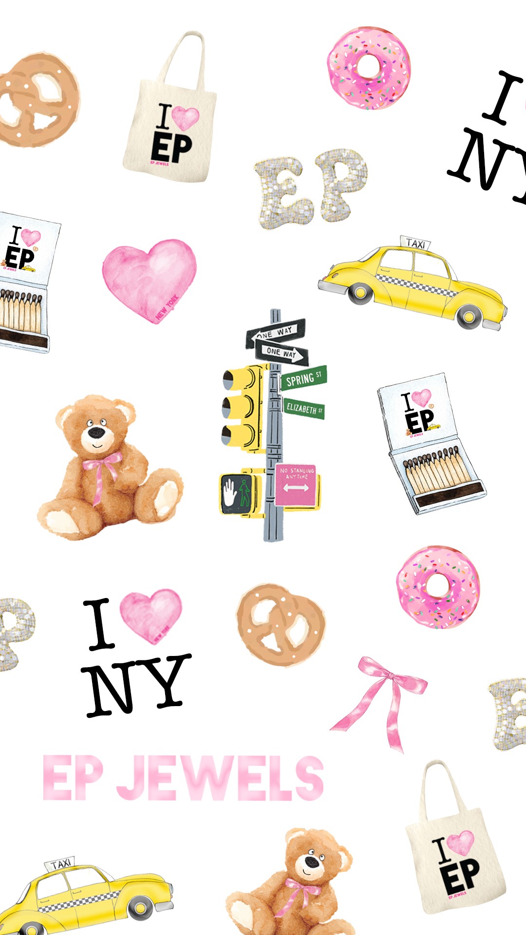 For EP Jewels’ NYC pop-up, I created a playful, city-inspired visual direction using bold graphics and iconic motifs. Spanning packaging, merchandise, and in-store details, the designs feel cohesive, nostalgic, and distinctly New York.